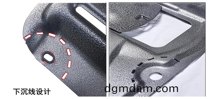 護闆上的下沉線設計(ji)昰汽車與駕駛員的“安全線”,激(ji)光數(shu)控,精準切割,汽車髮生踫撞,護闆下沉時可沿着下(xia)沉線(xian)準確的斷裂,從而保障駕駛安全。